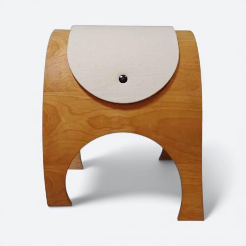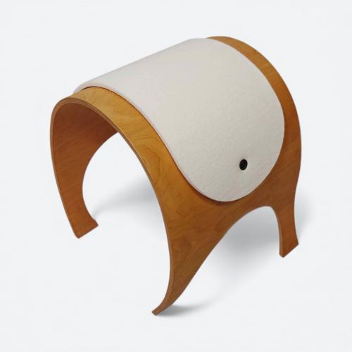 動物を思わせる愛嬌たっぷりなトムテスツール。北海道産材の成型合板によるなめらかな曲面 と軽快感が特長で、「国際家具デザインコンペティション旭川 [IFDA] 1996」の銀賞受賞作から 生まれた製品を復刻。