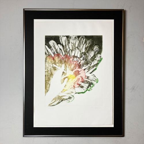 野中ユリの技法は、銅版画、平版、印刷版画、デカルコマニー、コラー