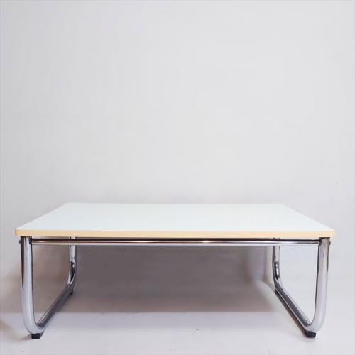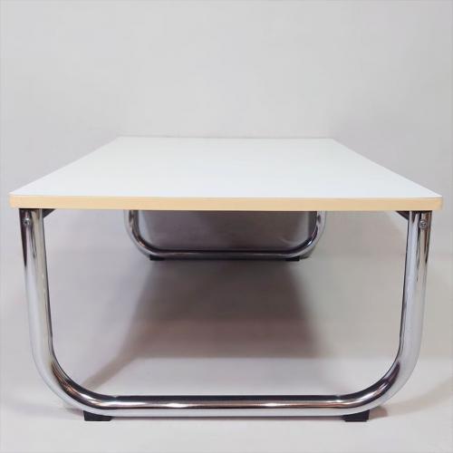ホワイトのメラミン天板とスチールフレームの組み合わせの定番テーブル。お馴染みの丸パイプが使われ、同メーカーらしい角の無い丸みのあるデザインに仕上げられています。