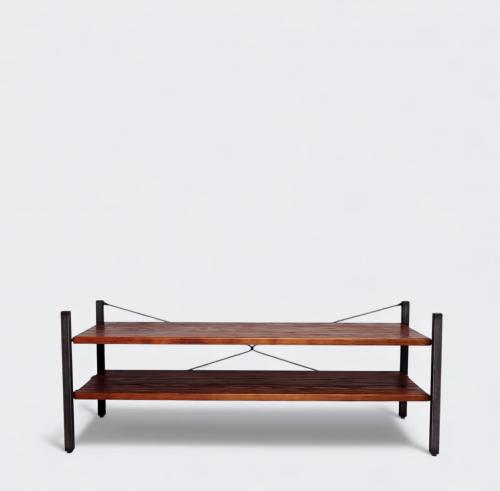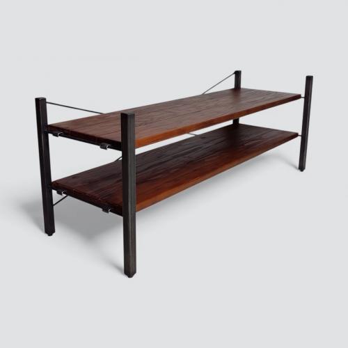 ACMEオリジナル「GRANDVIEW / グランビュー」シリーズのTVシェルフ。フレーム、棚板ともに武骨な雰囲気を演出するユーズド加工を施してインダストリアルテイストな仕上がりになっています。棚板やフレームの持つ風合いが、無機質になりがちなテレビなどAV機器周りを他のインテリアと調和させます。複数台での連結や、同シリーズのシェルフとの連結も可能です。