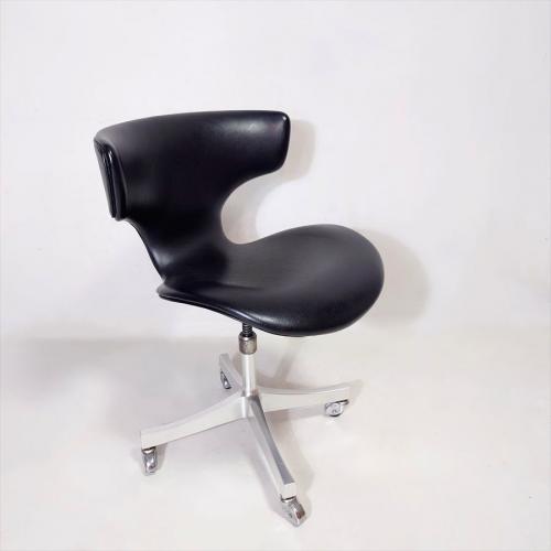 天童木工 カブトチェア/ブラック合皮・4本脚キャスター