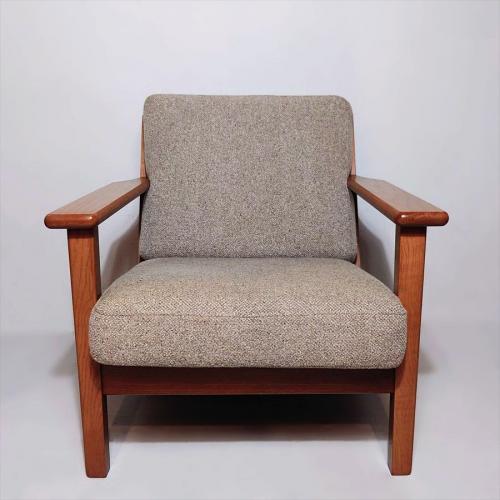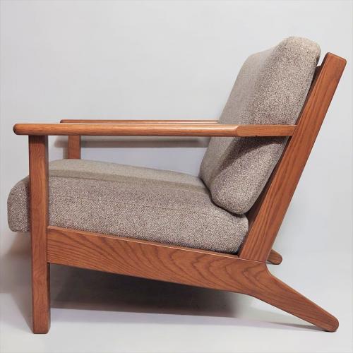 フラットな肘掛けや背面の格子状のフレームなど、ウェグナーのソファ GE290を連想させるシルエットが特徴のヴィスカシリーズ。1シーターは完全受注生産形式の販売だったため、中古市場に出回ることが少ない希少アイテム。
