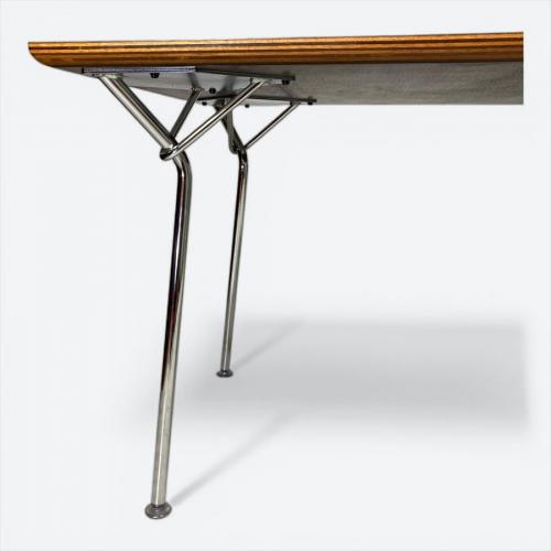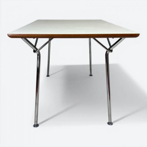 1969年に柳宗理デザインのサイドシェルチェアと同時期に、デザインされていたこちらのテーブルは当時試作品が完成していたものの製品化には至りませんでした。2000年代前半に「D&DEPARTMENT PROJECT」を主宰するナガオカケンメイ氏の発案によりスタートした、古き良き60年代のプロダクトを復刻する60VISION(ロクマルビジョン)でコトブキ60が参入する際、こちらのセンターテーブルは過去の資料の中から発掘され、柳宗理本人より再チェックを受けた後、初めて製造販売が開始されました。現在ではコトブキ60製は廃番となっており、天童木工により、サイズと脚の取り付け仕様が異なるものが製造されています。中古市場でも珍しくなった柳宗理デザインKOTOBUKI60製のテーブルとなります。コトブキは日本を代表するFRPメーカーとして知られ、1964年東京オリンピックや1970年大阪万博等で、 FRP製チェアや什器を手掛けた事でも知られています。