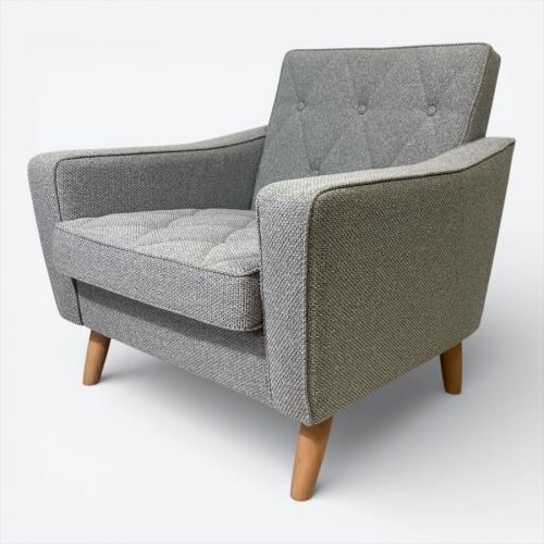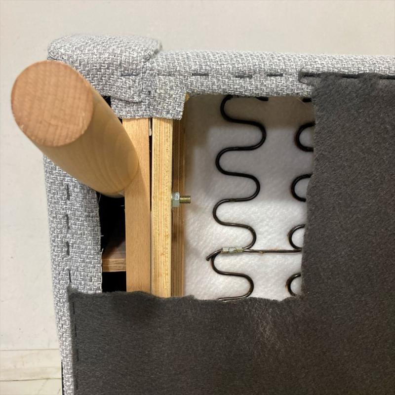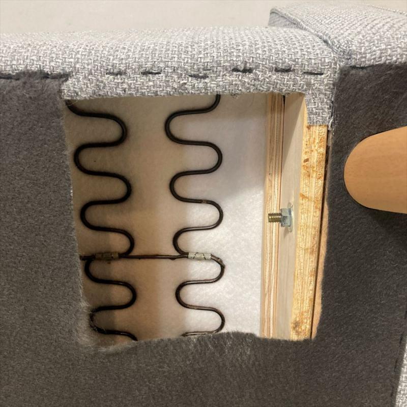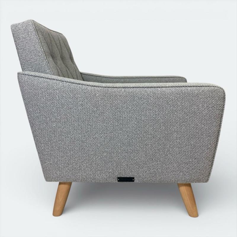 現在ではロビーチェアにおいて、廃盤カラー生地になっているミストグレー。現行品のベスパグレーより明るいグレー色になります。脚はブナ材。