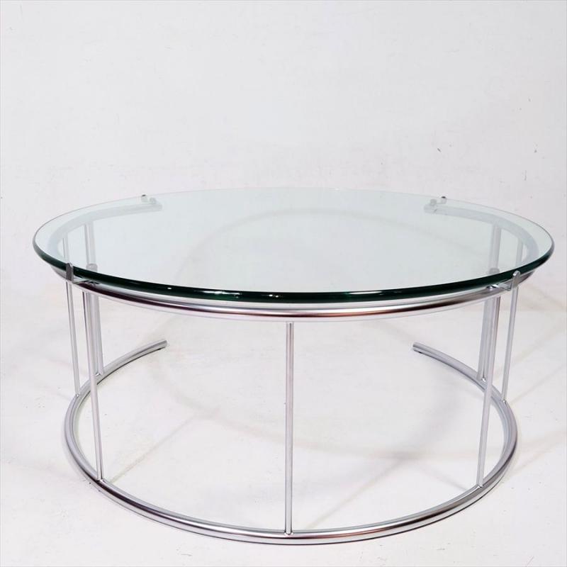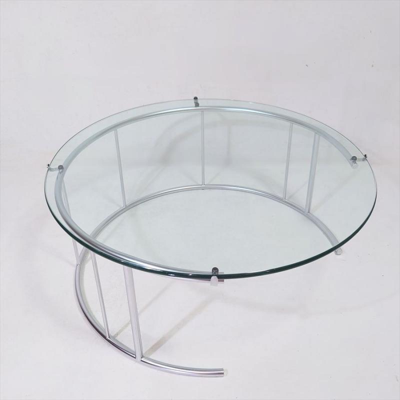 HUKLA(フクラ)のロングセラー商品TMRCガラスリビングテーブル (900サイズ)です。円形のシンプルなデザインとガラスの透明感が圧迫感を感じさせず、モダンで洗練されたガラステーブル