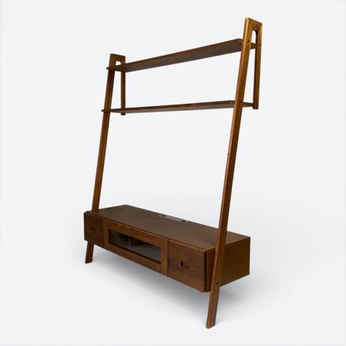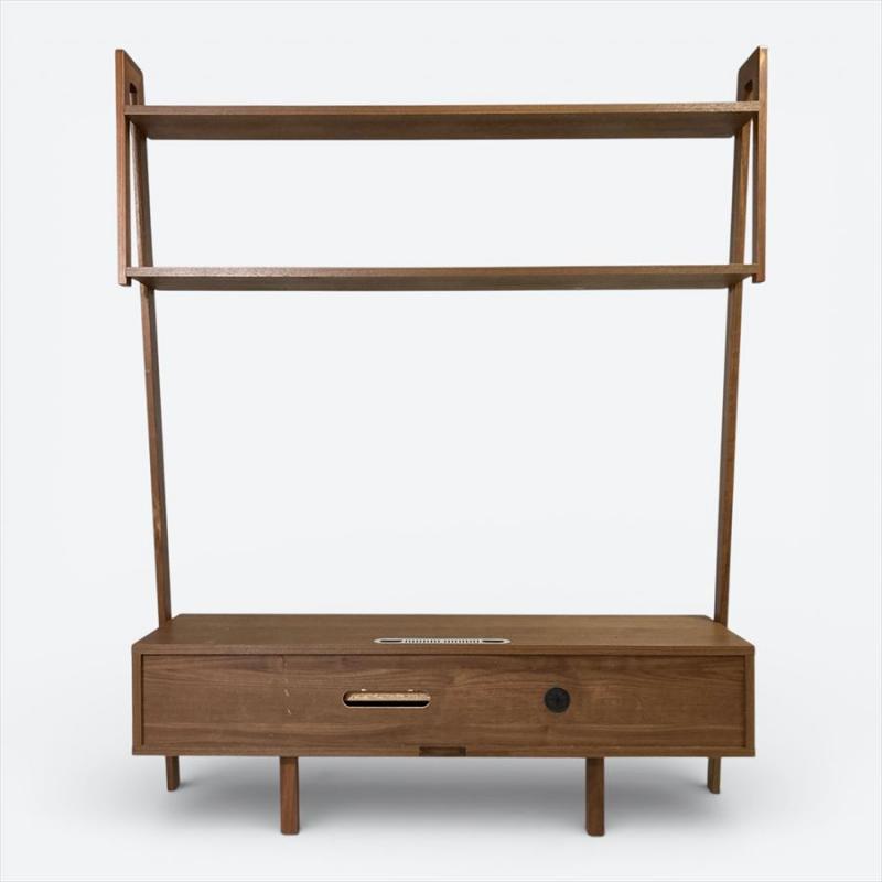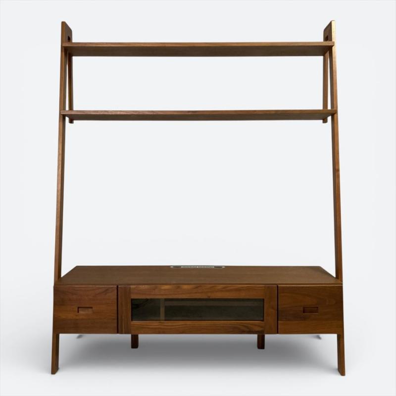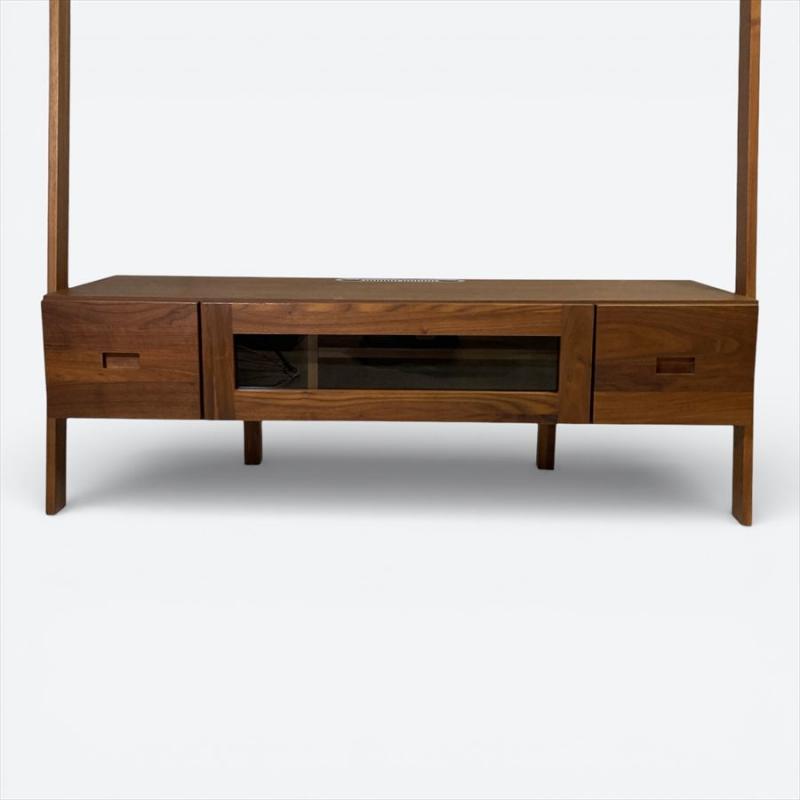 直線的でスタイリッシュなデザインが特徴的な高野木工レイリアシリーズのTVボード。テレビ上も無駄なくスペースを活かせる棚付き。見せる収納と隠す収納を兼ね備えたウォールストレージ。